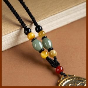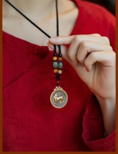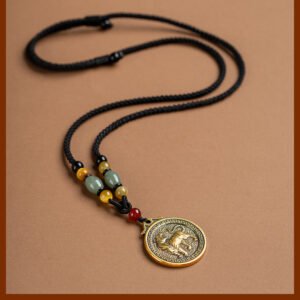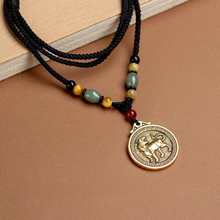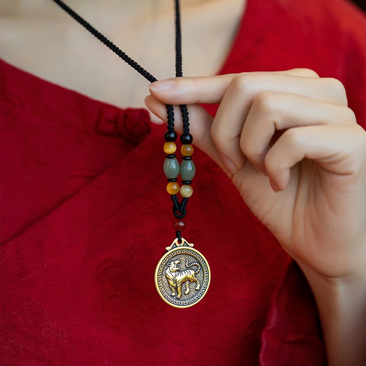 Brass Chinese zodiac retro long necklace with pendant, ethnic style, for people’s zodiac year, sweater accessory, Great Sun Tathagata, for those born in the year of the Rabbit or Dragon