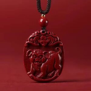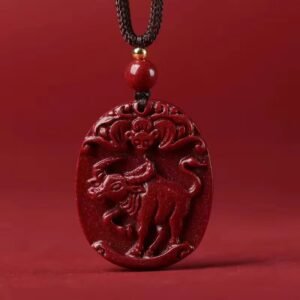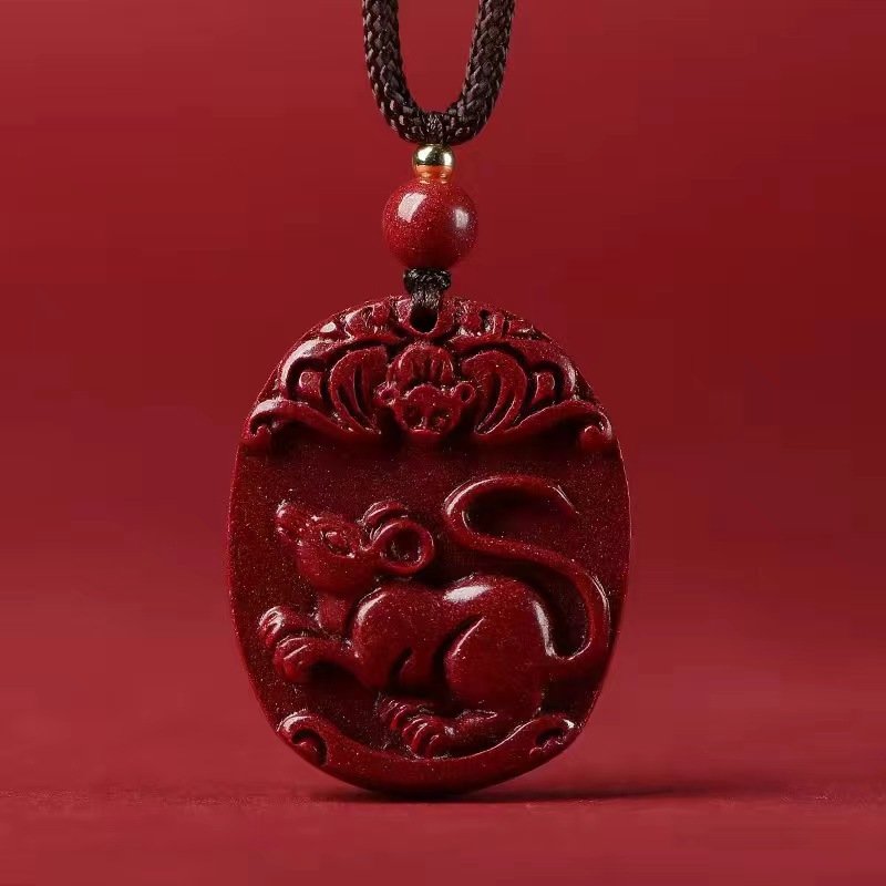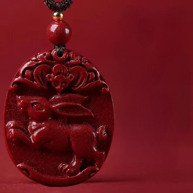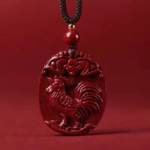 Natural genuine original cinnabar Chinese zodiac pendants. Pendants for the zodiac signs of rooster, ox, tiger, horse, dragon, and snake in the zodiac year. Unisex styles