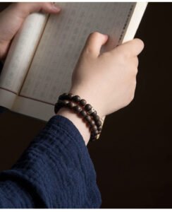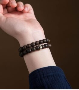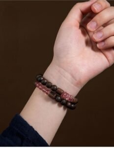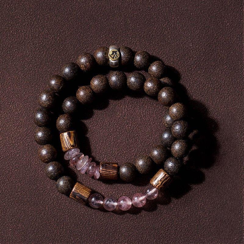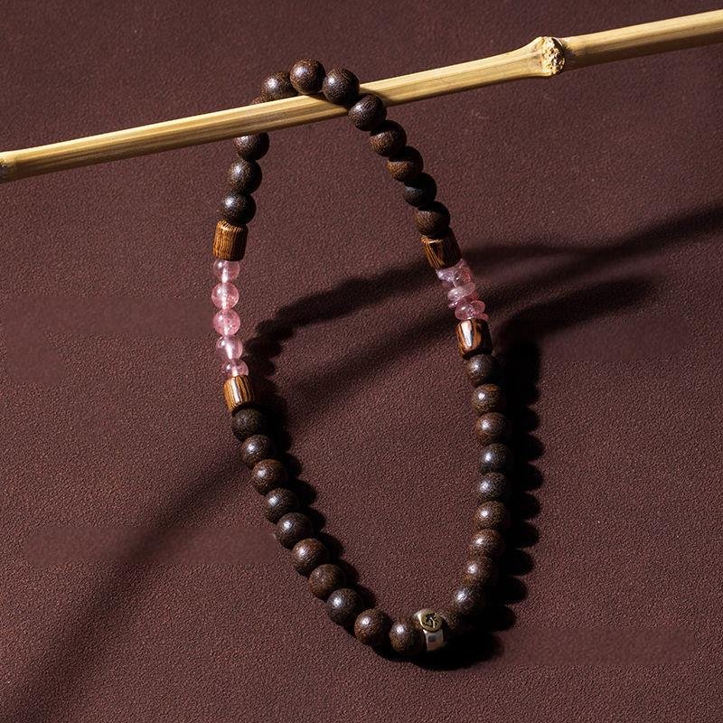 Natural agarwood, pure silver Chinese zodiac natal Buddha good luck ring, strawberry quartz double – loop bracelet, women’s hand – worn jewelry