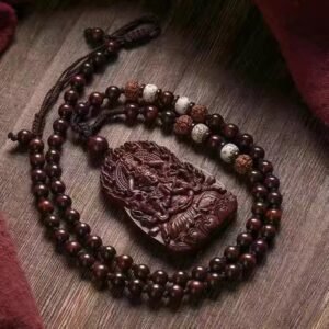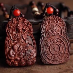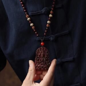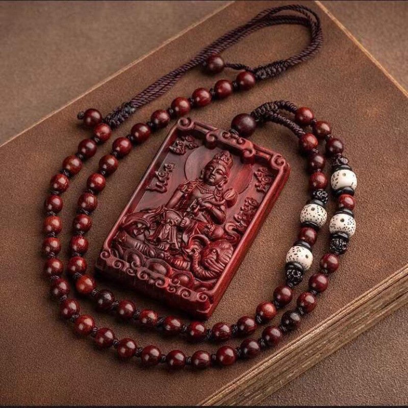 (With certificate) Indian small-leaf red sandalwood zodiac natal Buddha plaque, wooden Guanyin pendant necklace for men and women