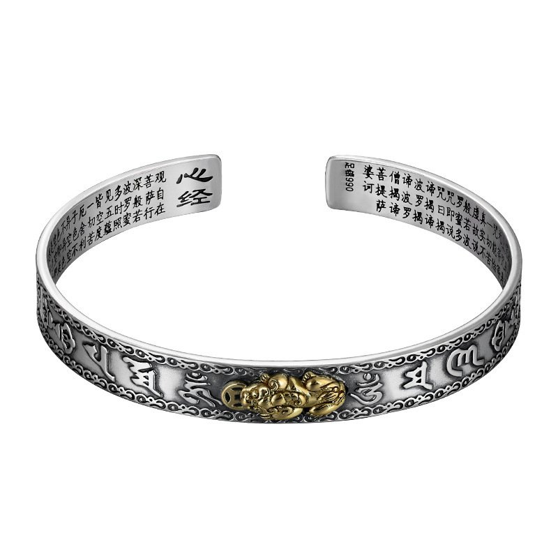 Six-character Mantra Bracelet for Men, Heart Sutra, 12 Chinese Zodiacs’ Guardian Buddha, Open-ended Bracelet, Retro Style for Men