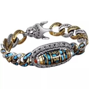 High – end epoxy – resin – coated turquoise six – character mantra nine – eyed dZi bead bracelet, plated with S925 silver, for trendy men and women with unique personalities