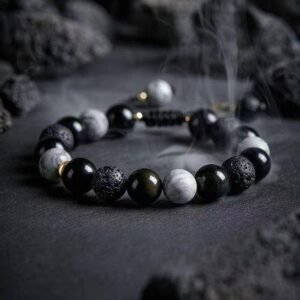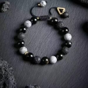 Men’s retro volcanic stone string bracelet. Men’s high – end, niche and versatile planet – themed jewelry with an ins style