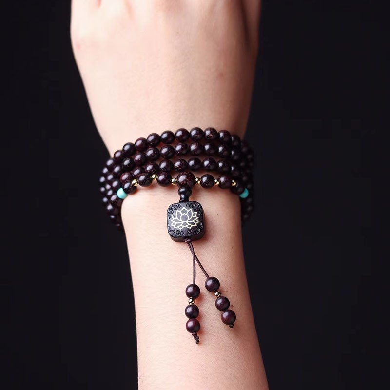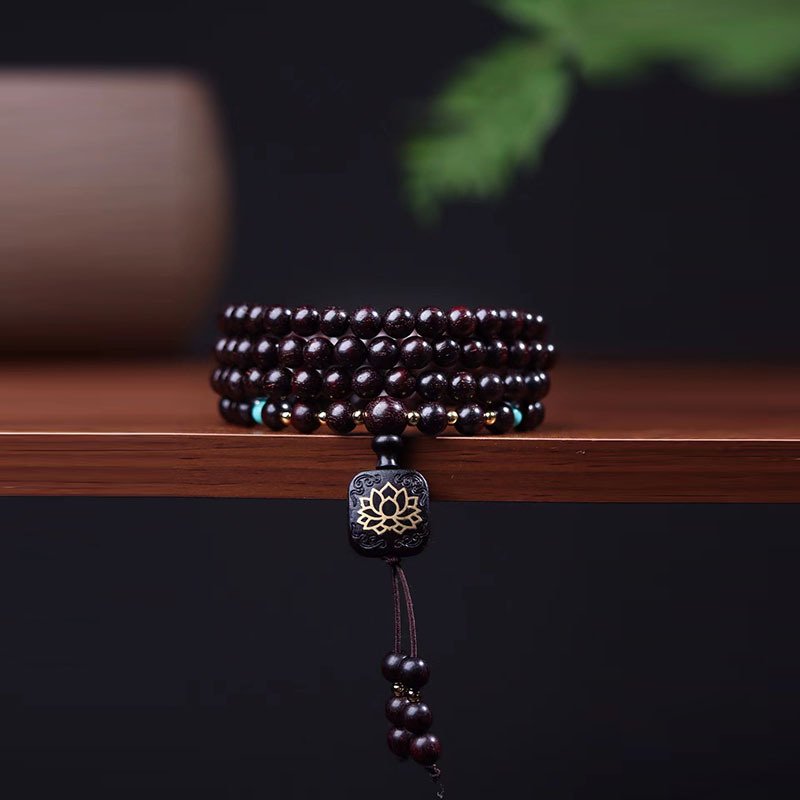 Old material small-leaf red sandalwood 0.6 bracelet, 108 beads prayer beads, high-oil lotus pendant wooden bracelet for men and women