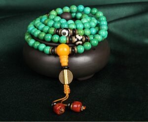 Hubei original mine natural turquoise 108 beads round beads, Grade A fine Buddhist beads, multi-turn bracelet, hand string