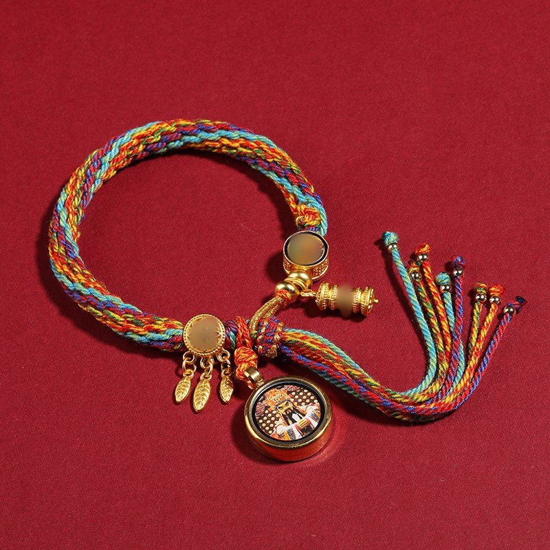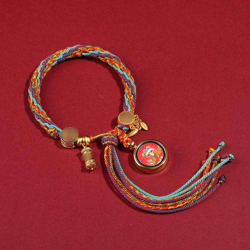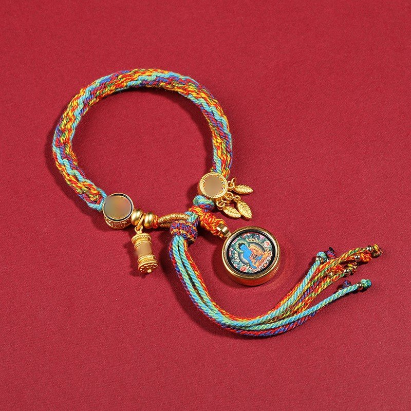 Thangka Tibetan-style hand rope, hand-rubbed cotton rope woven bracelet, Five-Path God of Wealth Eye, Drakki Lhamo, Green Tara, Manjushri Thangka