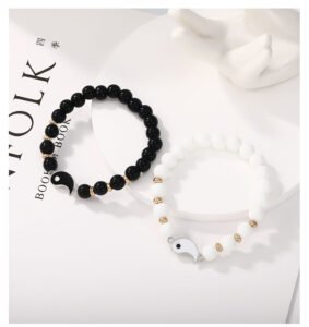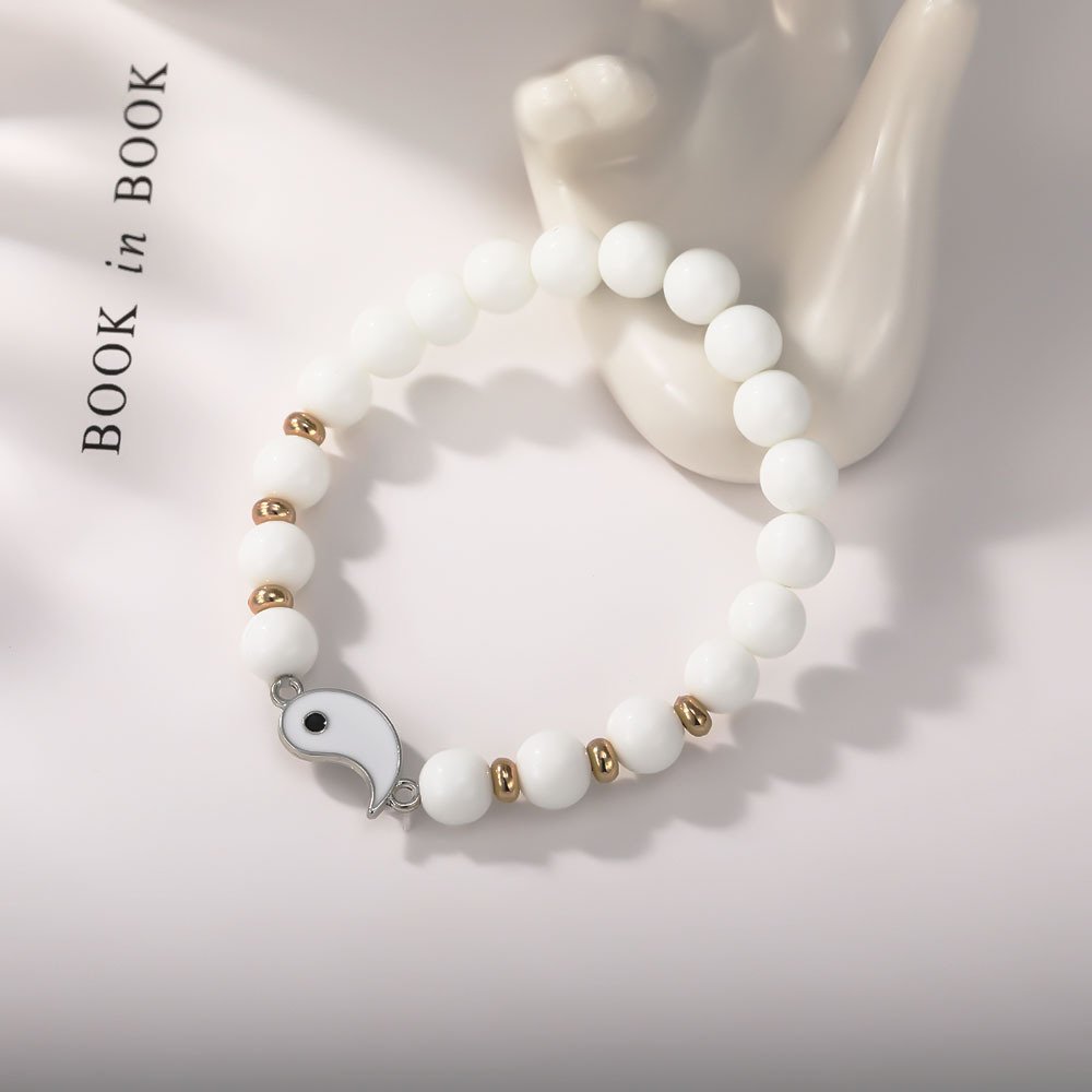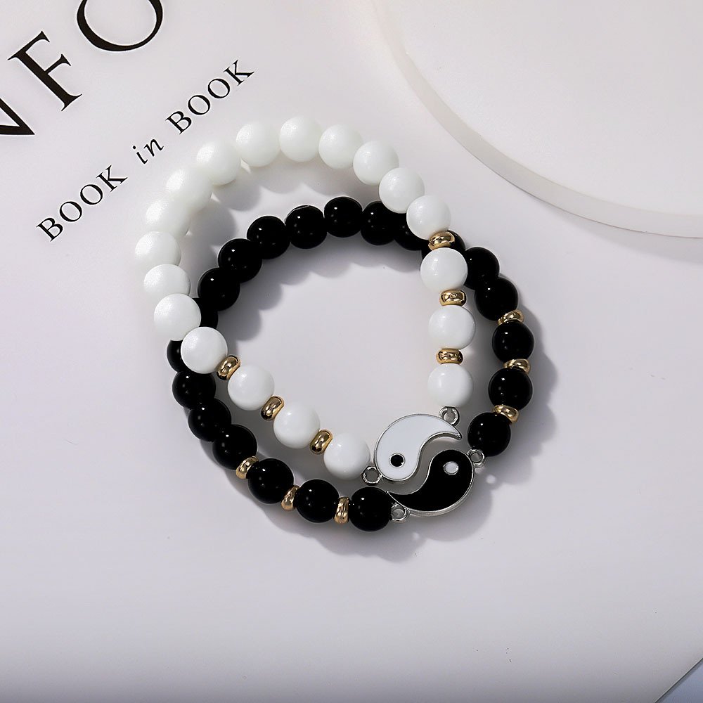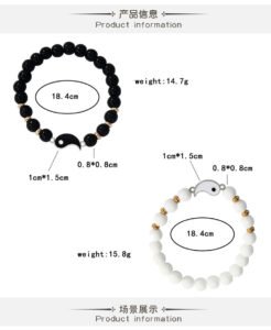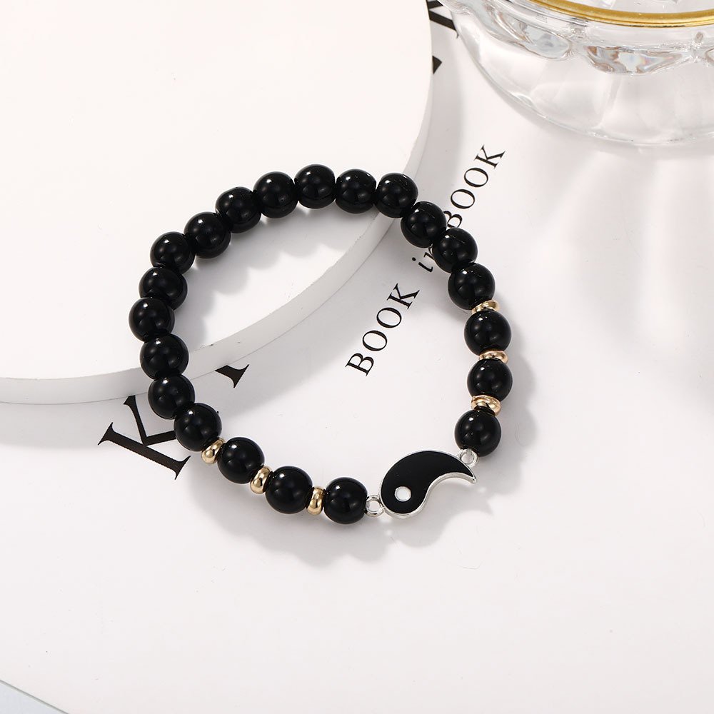 Alloy Tai Chi Eight Trigrams Couple Bracelet, Black and White Natural Stone Beaded Bracelet, Circular splicing Hand Jewelry